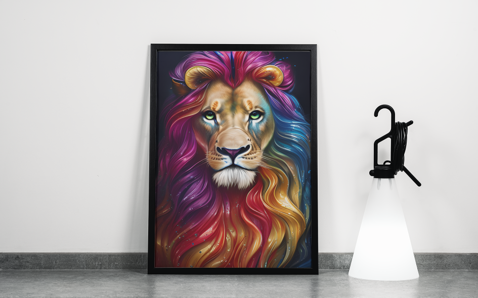 Add a touch of wildness to your home décor with this stunning piece of art. This A4 framed print features a magnificent Shiny Smooth Waves of one of the most majestic animals... The Lion, captured in portrait orientation. The high-quality gloss paper and expert production technique make the image come to life, showcasing the beauty and strength of this majestic animal.